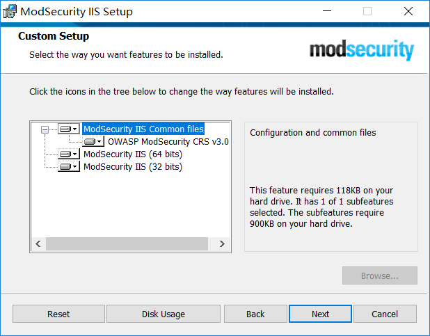 按照操作系统下载对应的ModSecurityIIS,点击此处下载32位ModSecurityIIS,点击此处下载64位ModSecurityIIS,下载后复制到服务器内,直接安装即可。